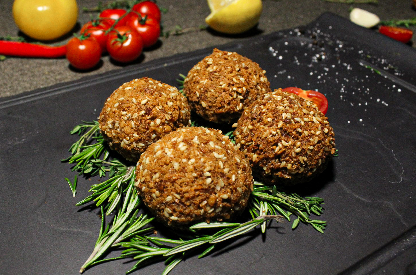 4 Boulettes végétariennes; avec son assaisonnement et crudités.
